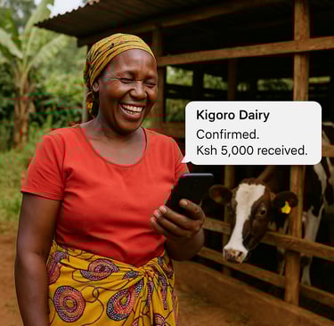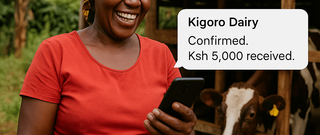 Mama Wanjiru kutoka kijiji cha Kigoro, Gatanga amepokea malipo yake ya maziwa moja kwa moja kwa simu yake huku akiwa nje ya banda lake la ng’ombe.